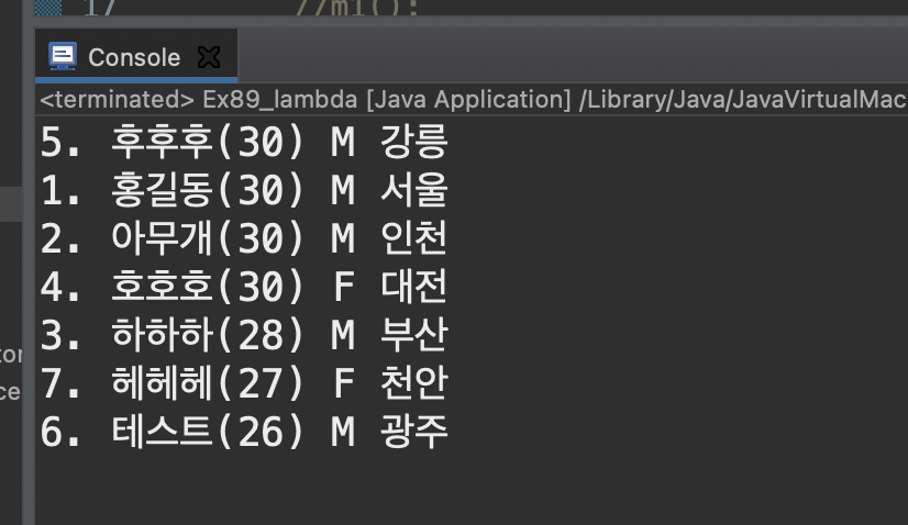 - 나이순(내림차순) - 성별(내림차순) - 지역(가나다순)