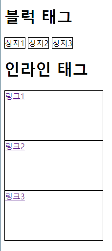 - inline-block : 인라인 태그처럼 출력 + 너비/높이 지정 가능