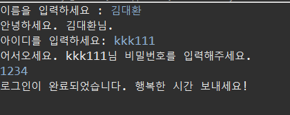 System.out.println("로그인이 완료되었습니다. 행복한 시간 보내세요!")