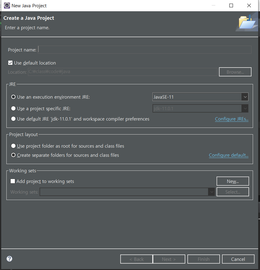 - 2. browse를 누르고 원하는 위치의 파일경로를 설정 후, finish