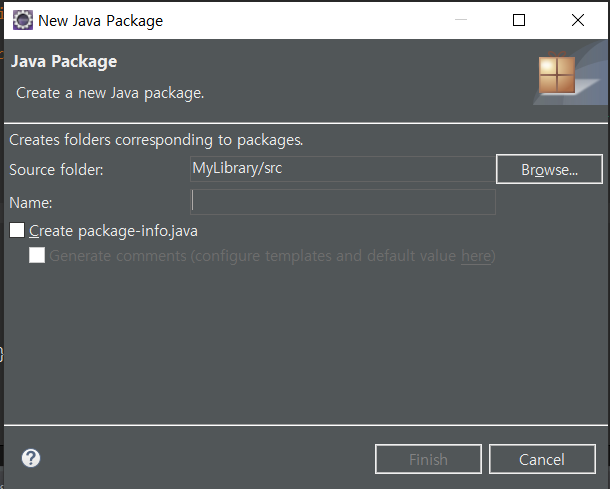 - 이름은 자유롭게 하여도 되지만, MyLibrary라는 이름을 가진 프로젝트를 생성하는 것을 추천.