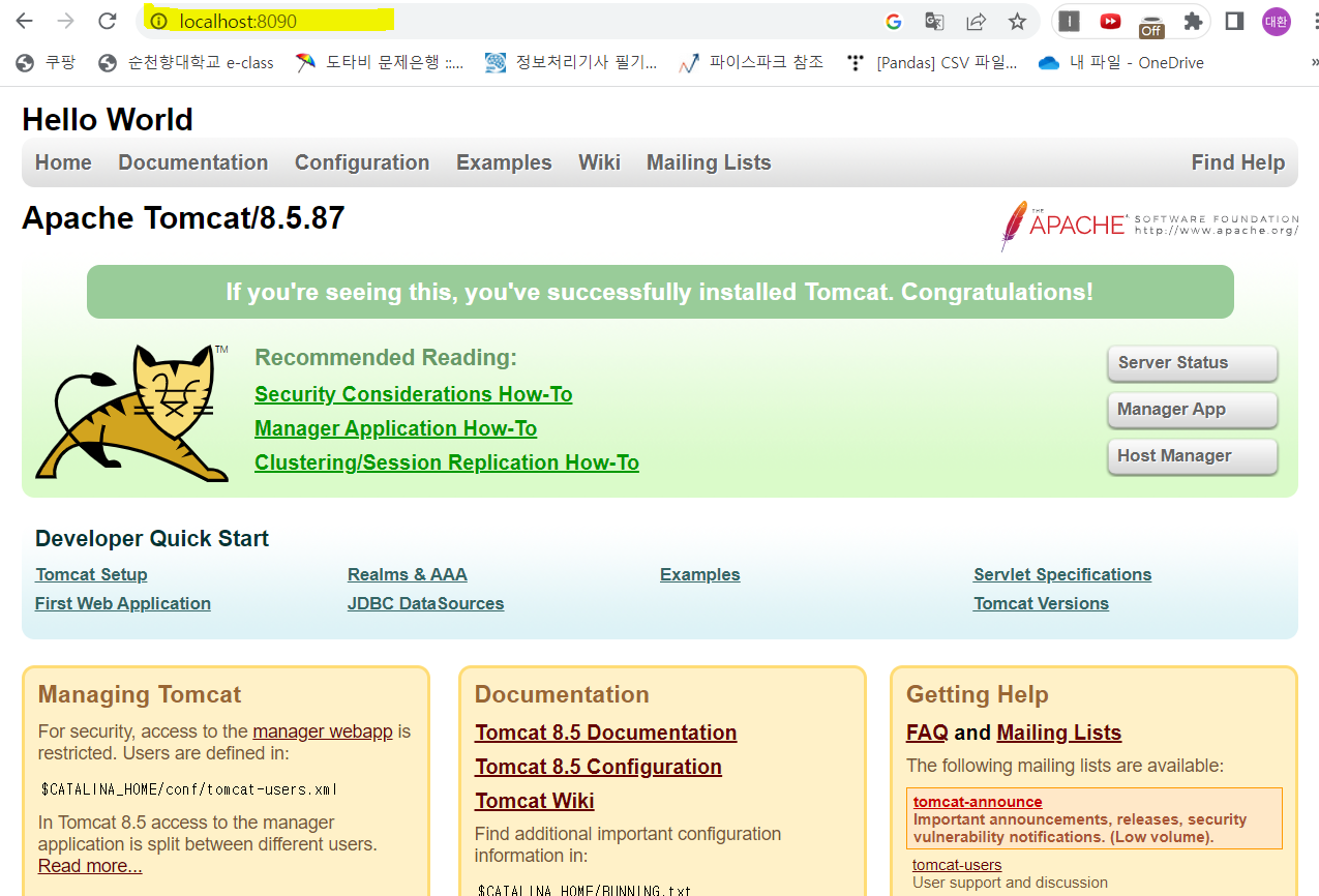 - 브라우저에 > http://localhost:8090 입력