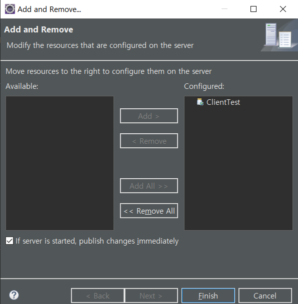 - server > 마우스 오른쪽클릭 > add and Remove > add