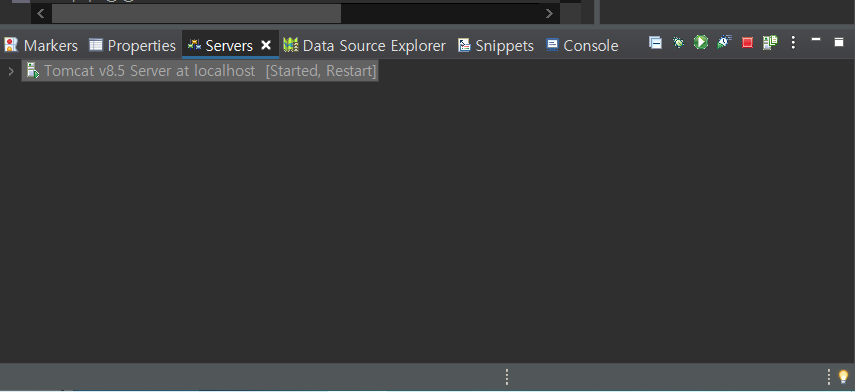 - 하단 servers에 있는 서버를 마우스 오른쪽 클릭 하고 start하면 톰캣 시작됨.
