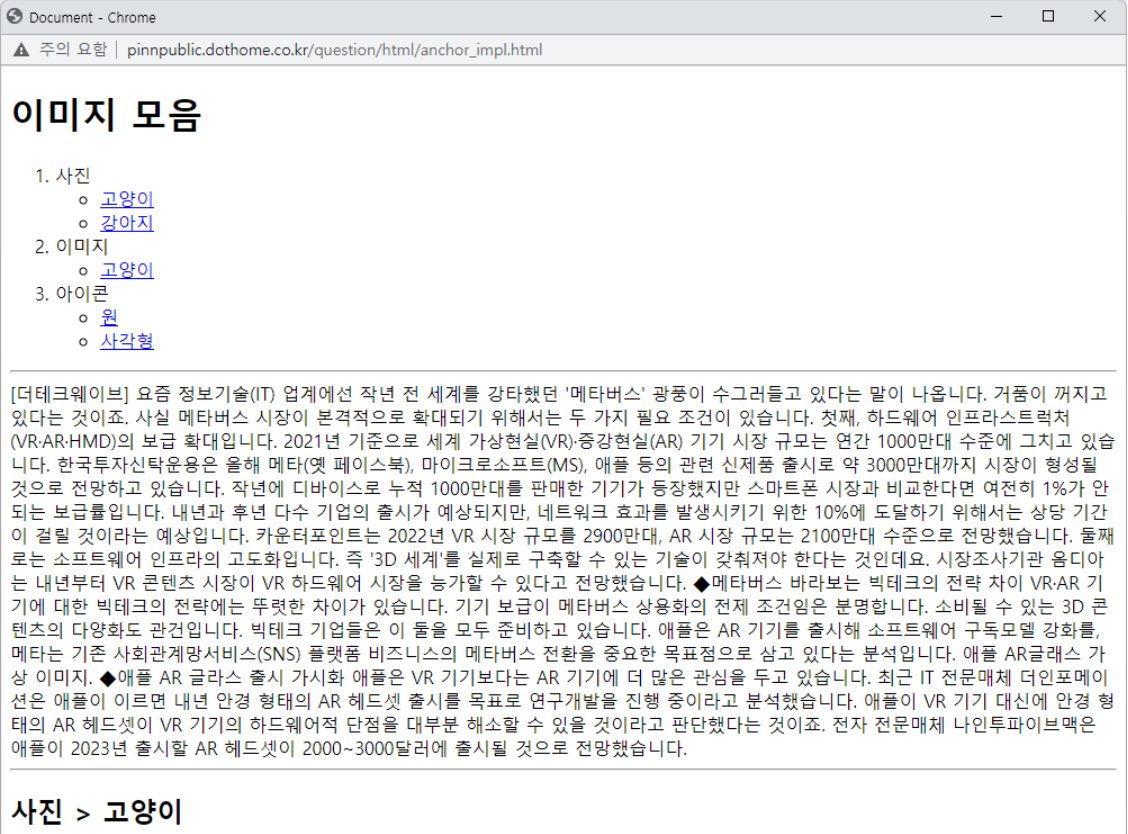 - 상단의 항목을 클릭하여 아래 컨텐츠로 이동하시오.