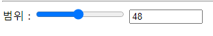 범위 : <input type="range" onchange="document.getElementById('txt2').value = this.value">