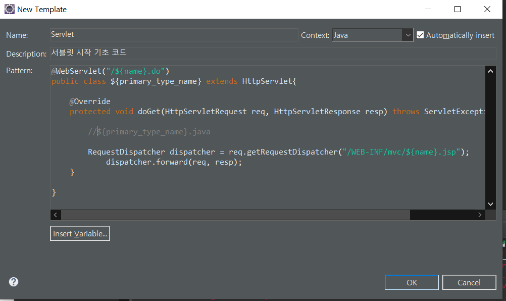 ■ 자주 사용하는 서블릿 코드 -> 템플릿 등록