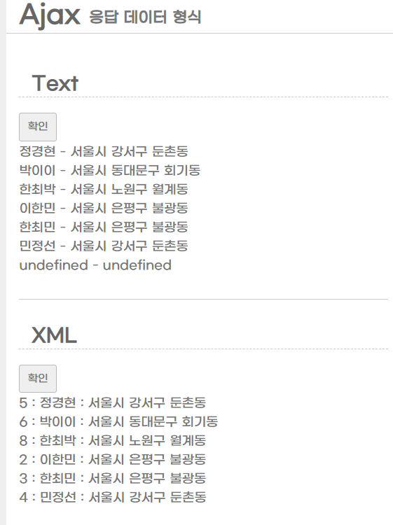 <h1>Ajax <small>응답 데이터 형식</small></h1>