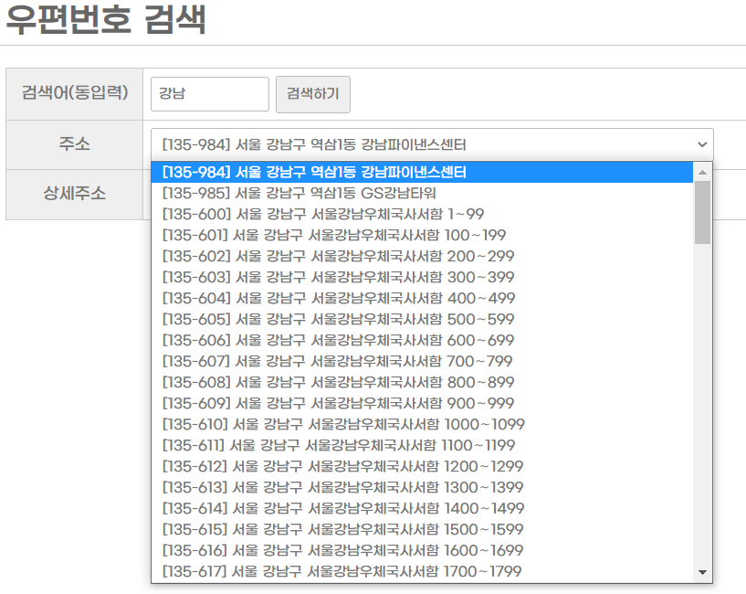 <h1>우편번호 검색</h1>