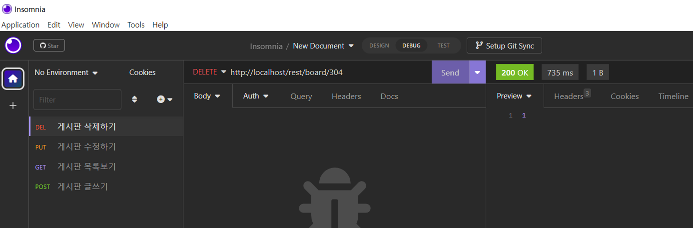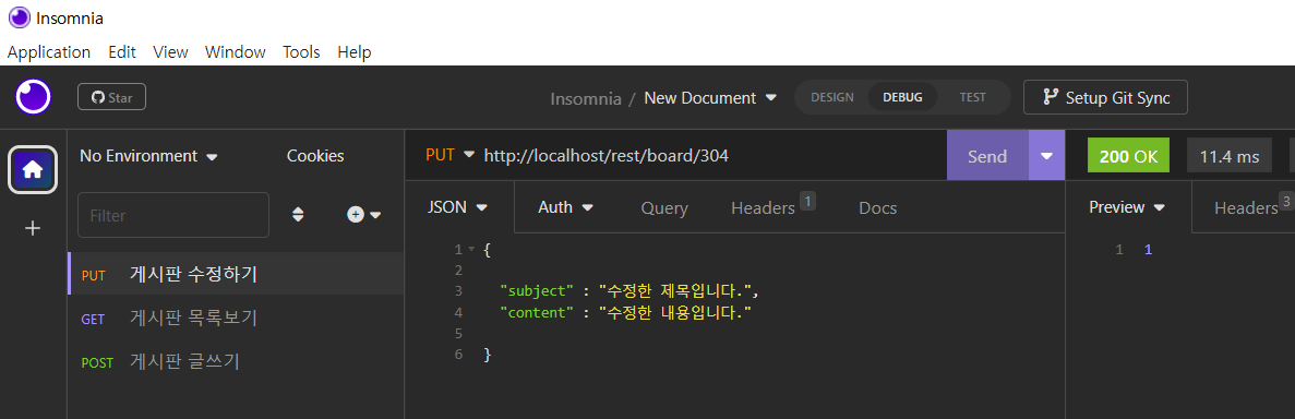 - 수정하기 PUT http://localhost/board/1 + 데이터(패킷 저장)