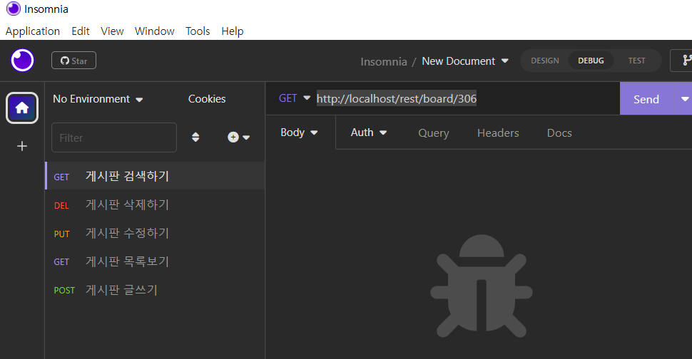 //REST 서비스 > 테스트 > 클라이언트 툴(Postman, Insomnia, VSCode, 크롬 확장 프로그램 등..)