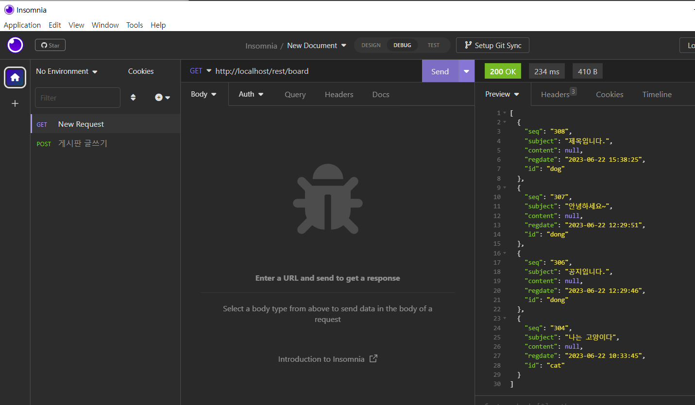 - 추가하기 POST http://localhost/board + 데이터(패킷 저장)