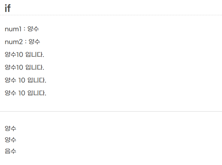 <div th:if="${num1 > 0}" th:text="'양수' + ${num1} + ' 입니다.'"></div>