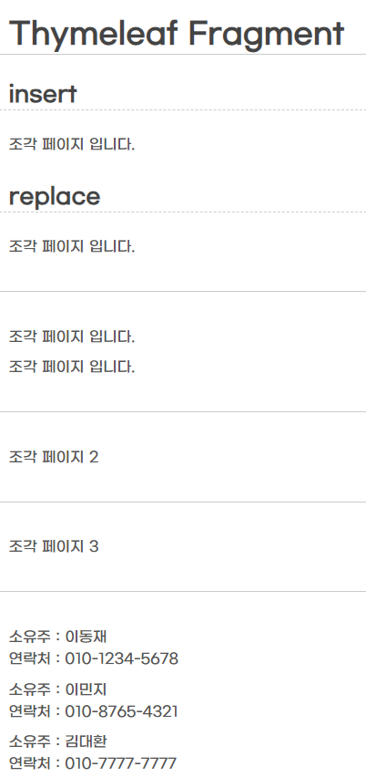 <div th:insert="~{inc/sub2::owner('이민지', '010-8765-4321')}"></div>
