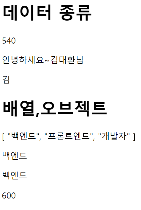 - 프로퍼티에 배열, 오브젝트를 설정해 HTML에 출력할 수 있다.