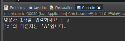 System.out.print("영문자 1개를 입력하세요 : ");