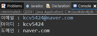 예제 2) 요구사항 : 이메일 주소를 입력받아 아이디와 도메인을 각각 추출하시오.